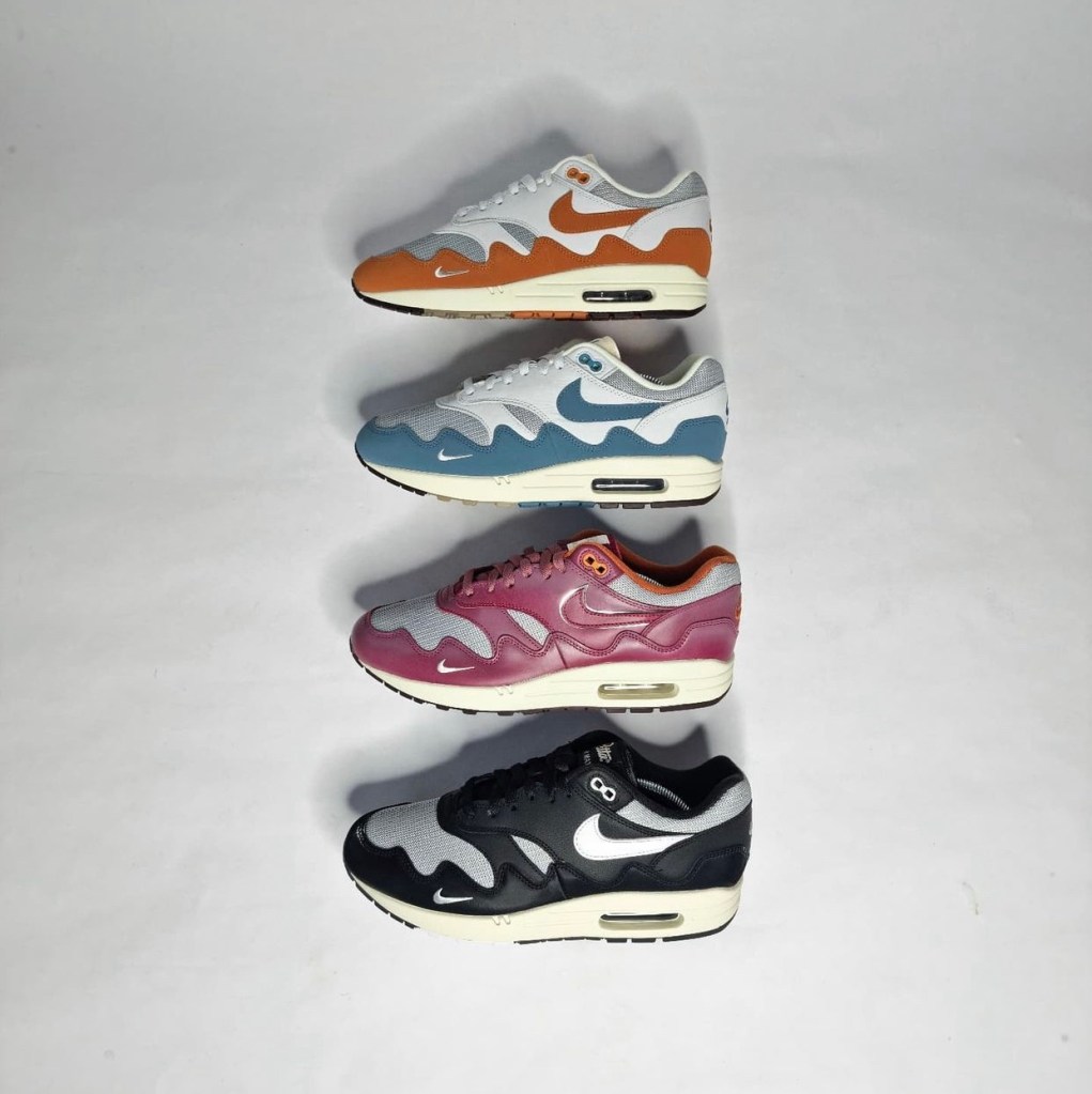 The Air Max 1 is a classic, but the Patta x Nike Air Max 1 caused a stir. A wavy water-like mudguard replaces the usual one you’d see on the model. Four colourways dropped; Monarch, Aqua Noise, Night Maroon and Black White. But, some colourways did better than others.
