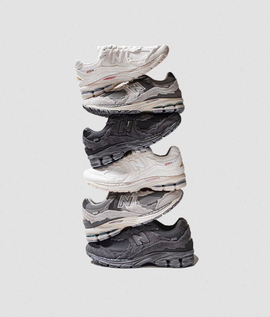 A distressed dad shoe. The New Balance 2002R Protection Pack combines two consistent trends; a distressed look and the Dad shoe. The two elements balance each other out. The chunky silhouette can stand alone, but the distressed details across the sneaker lift it to another level altogether.