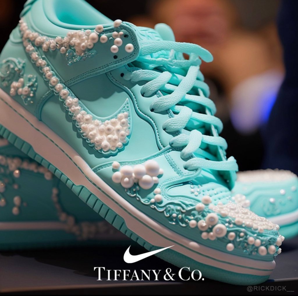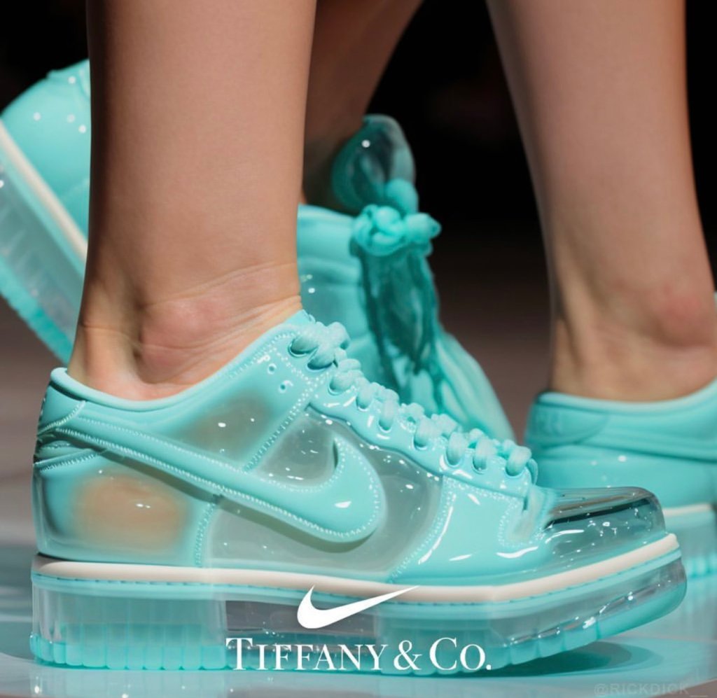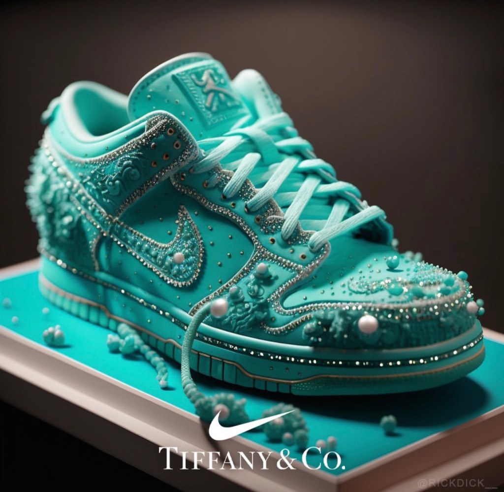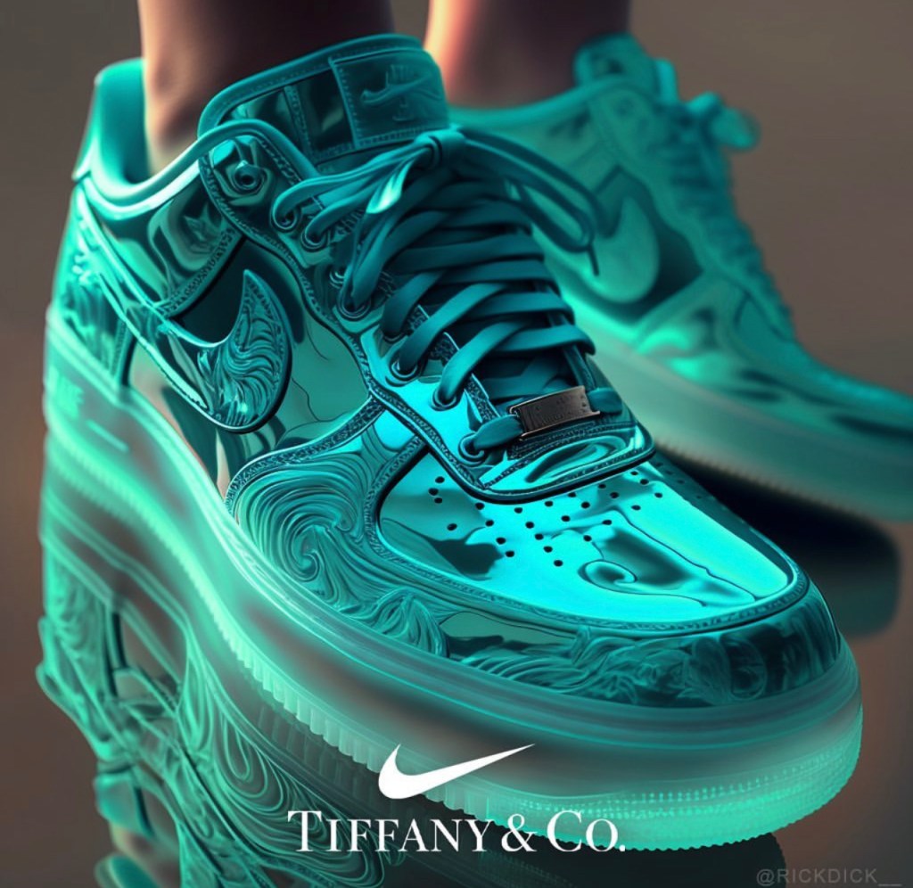 These AI-rendered mockups below by RICKDICK are closer to what comes to mind when you think of a Tiffany & Co x Nike collaboration. Click here to read the comments beneath the post.